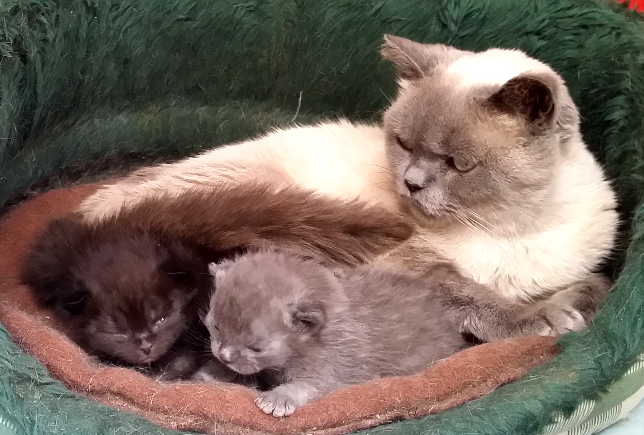 In the first week of September, a tiny and heavily pregnant Blue Point British Shorthair was handed into our care. She had been struggling to survive on the streets and but for her pregnancy bulge, was very thin. A week later she began to give birth.