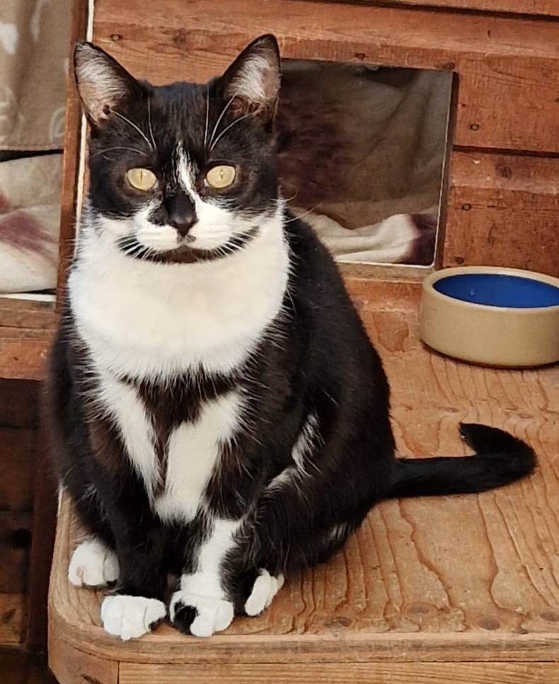 Buttercup has come into our care as an abandoned, homeless cat, and Gemma came to us with her 3 kittens (now homed) from a harsh life outside.
