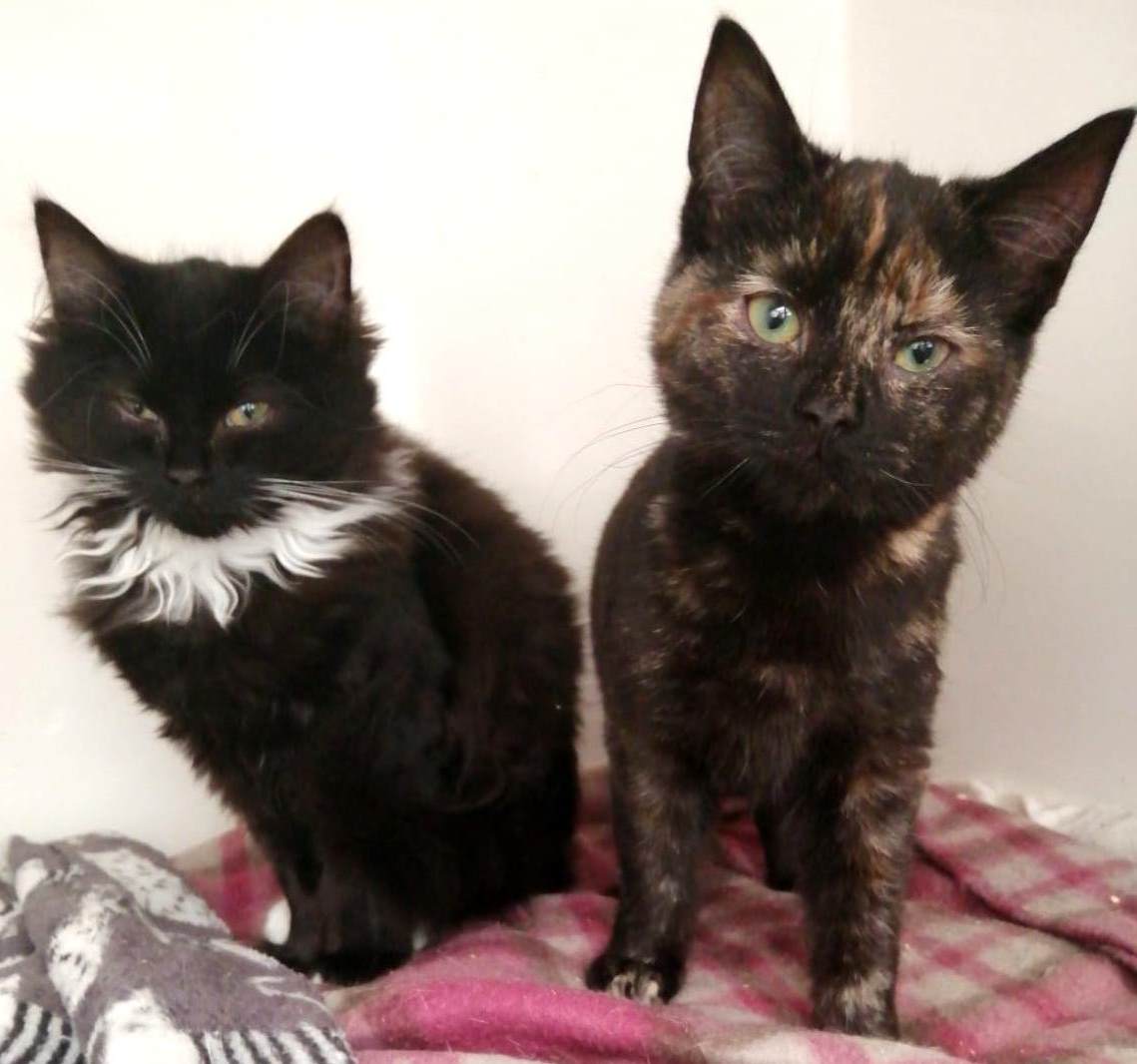 Hesta is a gorgeous classic tortie girl and her sister Hayley is cute and fluffy black and white girl.