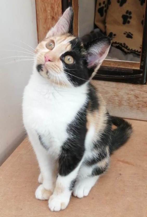 Bonnie, a beautiful pastel calico, is just a year old and little Pixie, a stunning classic calico, is three and a half months old.