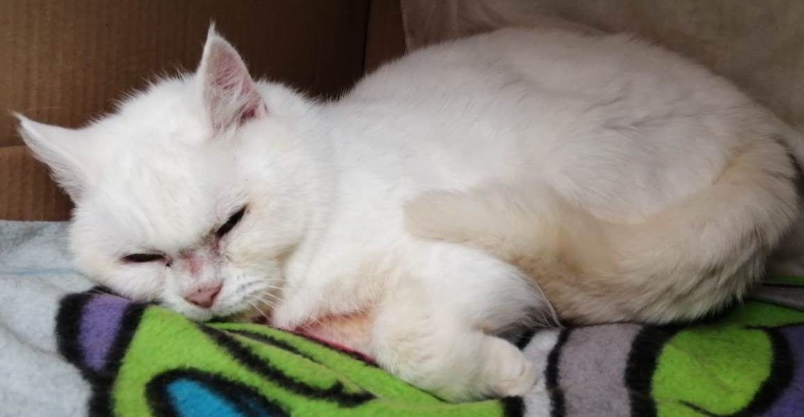 Not long before lockdown we were contacted about a little white cat in need of help due to the fact that someone was moving away. When we got to the bottom of the issue, we were confronted with a very sad and unnecessary tale.