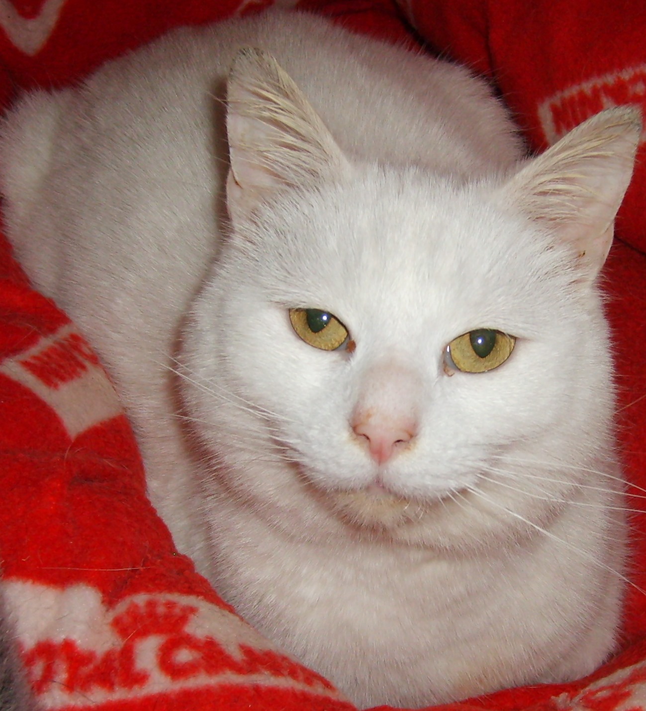 There are three kinds of white cat – albinos which have an absence of colour and do not carry a deafness gene, “dominant white” and foreign white. Dominant white means that their white coat is an actual solid colour, not that the cats are dominant themselves. For a white cat to be deaf they must have the “dominant white” coat colour and two blue eyes and even then if they do not carry the particular gene that causes deafness, they will not be deaf. Odd eyed white cats may be deaf on the blue eyed side, but this is also very rare. Foreign whites are a self-colour Siamese type. These cats are never deaf due to the fact that their blue eyes come from the Siamese blue eyed gene.